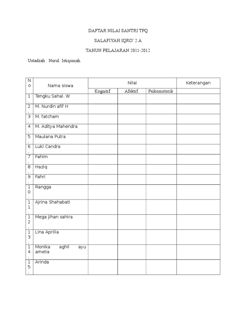 Daftar Absensi Siswa TPQ | PDF