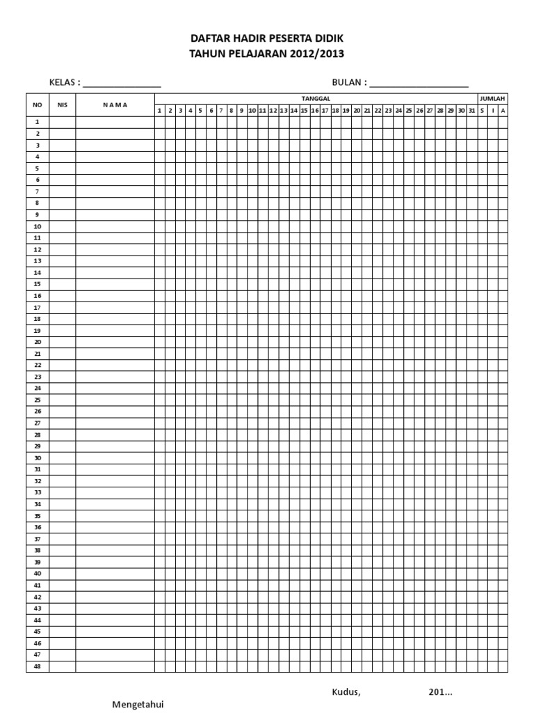 Cara membuat daftar hadir atau absen siswa di microsoft word | free file | Tutorial89